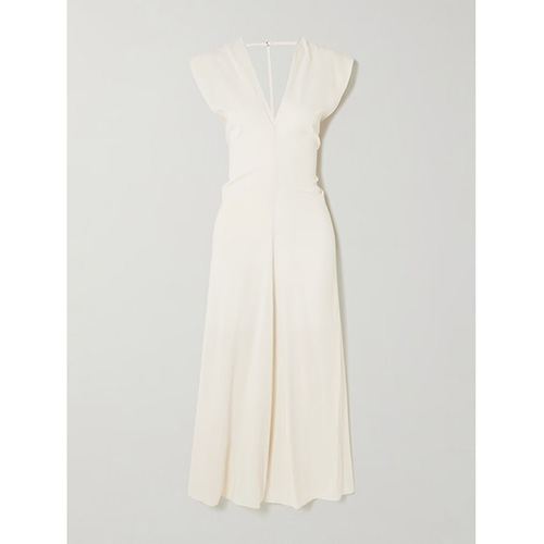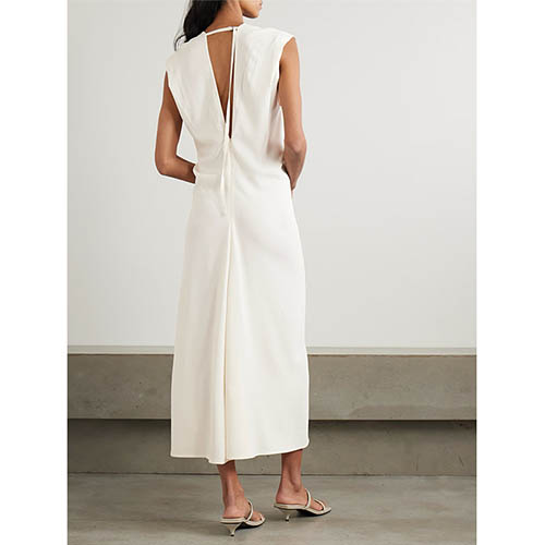 Tag Panas: Gaun midi V dalam tanpa lengan berwarna gading